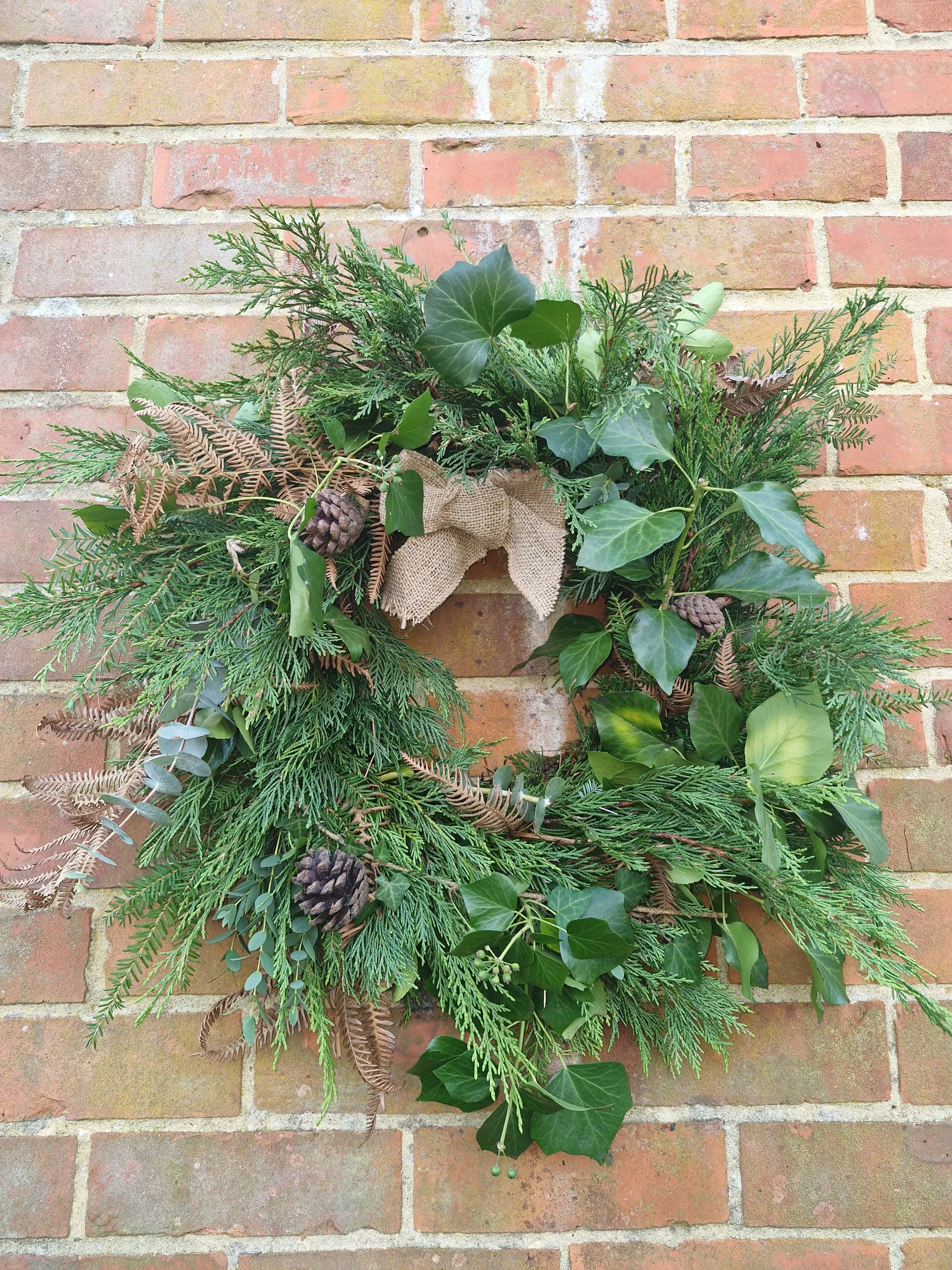 Add a touch of natural elegance to your home with this handcrafted Christmas wreath, lovingly made in Dorset using fresh, seasonal foliage. Featuring fragrant evergreens, ivy, eucalyptus and natural textural details, it creates a timeless and welcoming display for your front door or interior. Perfect for gifting or styling your own space, this wreath brings effortless seasonal beauty and a classic festive feel to any home.